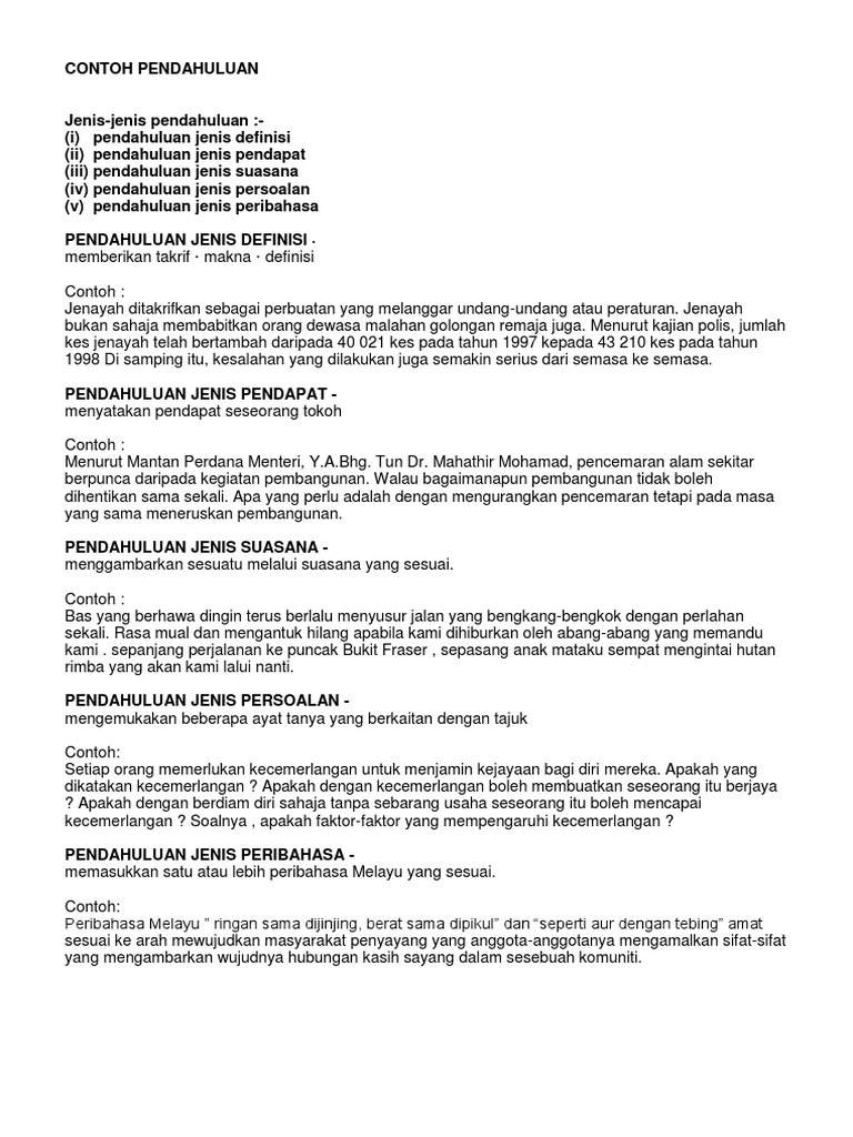 Panjang pendahuluan lebih kurang 80 patah perkataan. Lihat contoh soalan dan kerangka karangan untuk bahagian pendahuluan yang. 3 Pada sangkanya orang itulah yang mengganggu perjalanannya setiap hari.